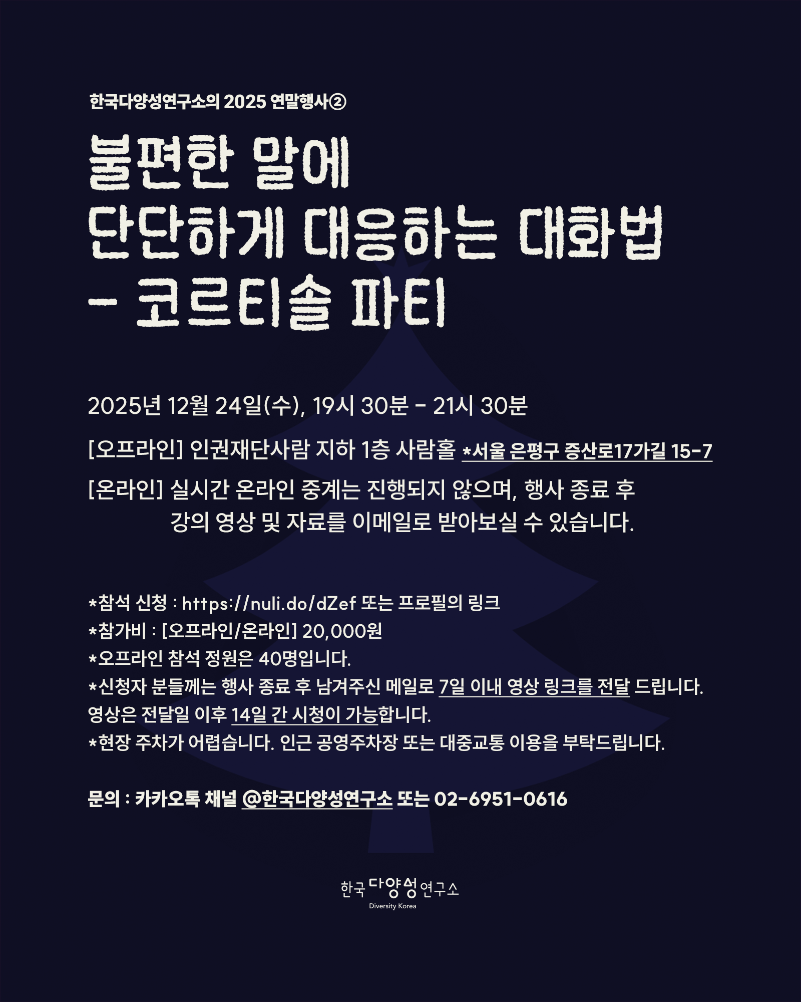 2025년 연말은 한국다양성연구소와 함께! 올해 연말행사는 두 번에 걸쳐 진행됩니다.
